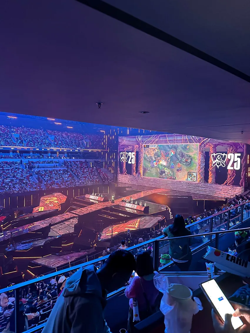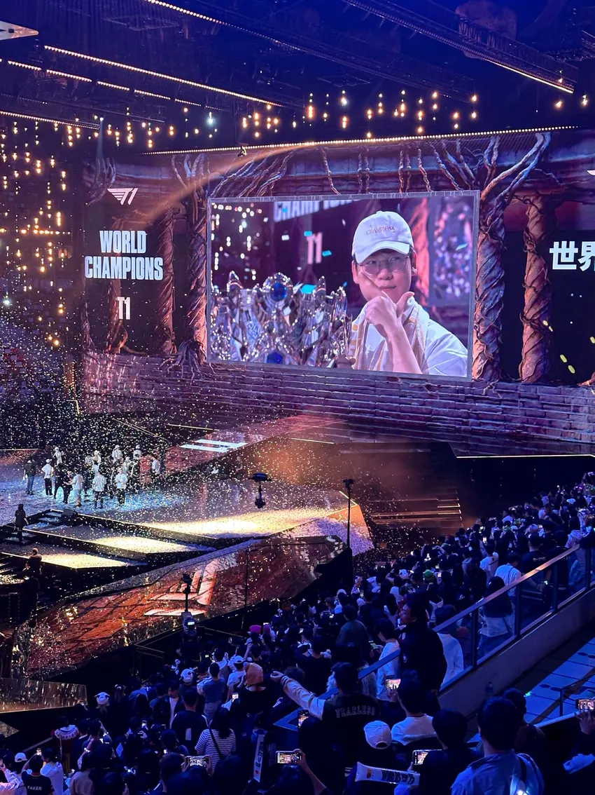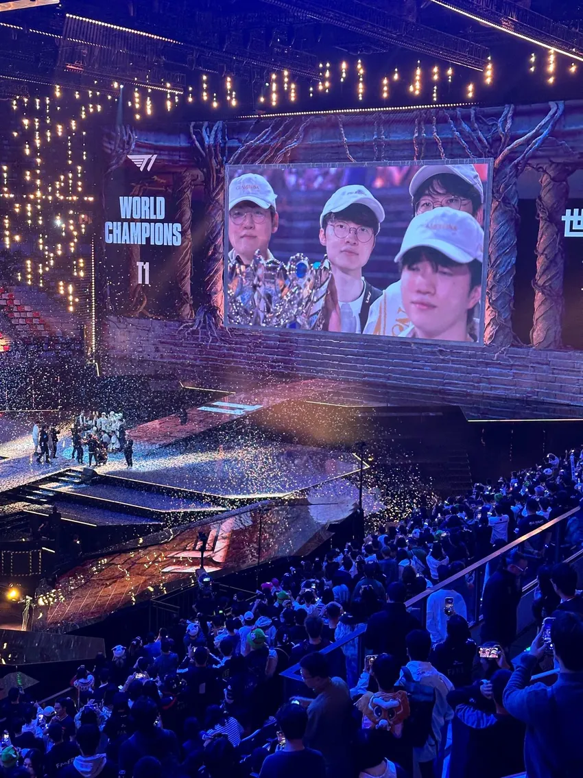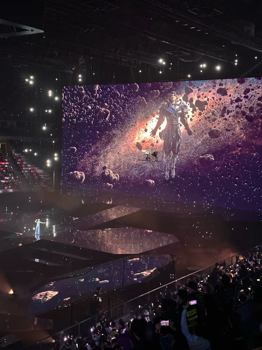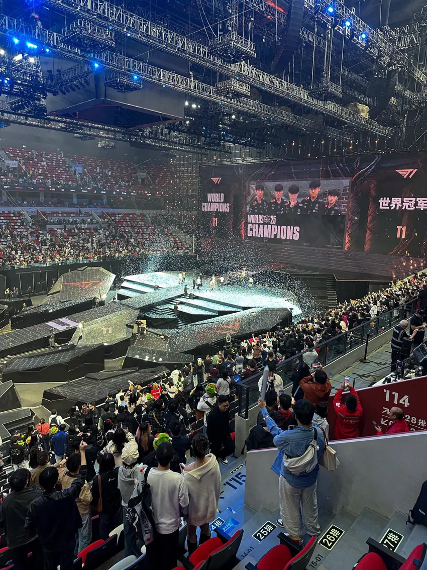 现场氛围太震撼,邓紫棋献唱Sacrifice,全场几乎都是T1的欢呼声,真全球主场!还偶遇女faker莎赫儿就坐在我们后面,人超好还陪大家合影!