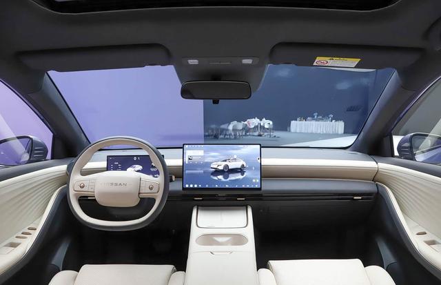 进入到车内,映入眼帘的是日产N6极简风格的内饰设计,不过由于新车在中控位置配备了两块大尺寸的屏幕,所以内饰的科技感还是呈现得比较不错的;此外,新车在内饰用料方面的表现也尚可,因此,内饰也有着一定的精致感。配置方面,例如全液晶仪表、中控大屏、自动分区空调、后座空调出风口、电动天窗、电动座椅等配置在日产N6上均有出现。