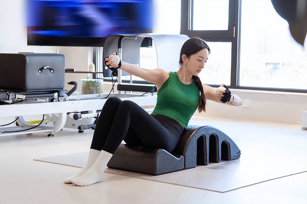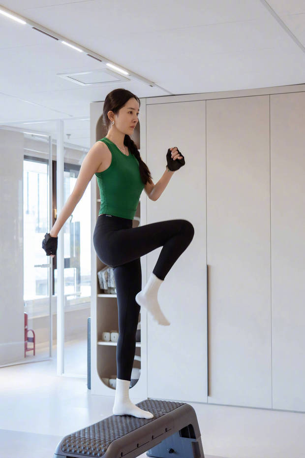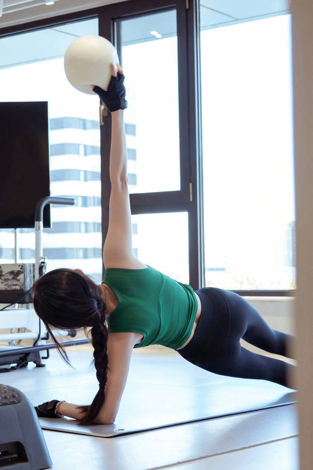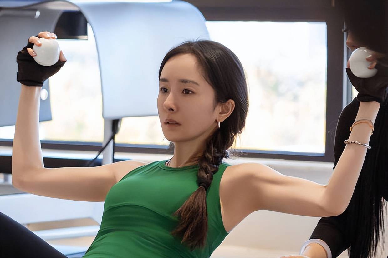 杨幂专心健身,状态在线。